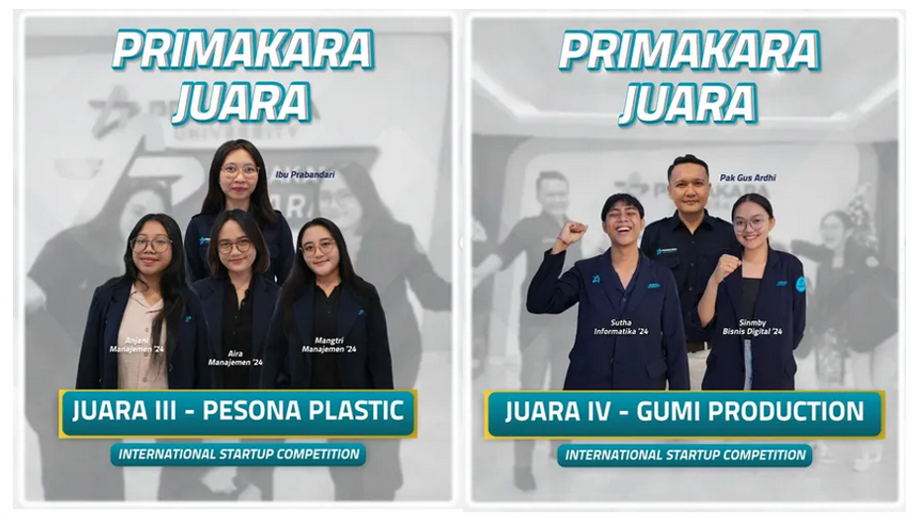 Inkubator Bisnis (Inbis) Primakara kembali membuktikan kualitasnya sebagai pencetak startup kelas dunia. Dua tenant unggulannya berhasil menorehkan prestasi gemilang dengan meraih Juara III dan Juara IV dalam ajang bergengsi International Startup Competition yang digelar pada 23 Oktober 2025.