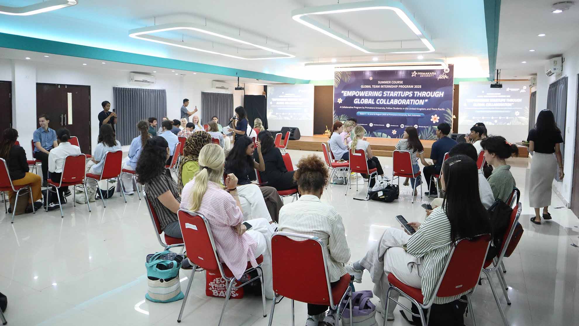 Universitas Primakara (Primakara University) kembali mempertegas posisinya sebagai ekosistem teknologi dan bisnis digital pilihan dunia. Pada 23–27 Juni 2025, puluhan mahasiswa dari berbagai universitas bergengsi di Inggris (United Kingdom) resmi mengikuti program Global Team Internship Program 2025 yang dikemas dalam format Summer Course Batch 1. Kegiatan ini rencananya akan berlangsung sebanyak 4 Batch dengan kelompok mahasiswa yang berdeda di setiap Batch.